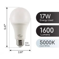 This A21 LED Light Bulb delivers superior brightness, valuable energy savings, long-lasting performance, and true color perception. These Omni-directional LED bulbs are ideal for ambient lighting or general purpose applications due to its uniform Cool White light and replace conventional 100-Watt incandescent light bulbs. Enjoy features such as: Instant on, dimming options, energy efficient, 90 plus CRI, damp rated, and enclosed fixture suitable.