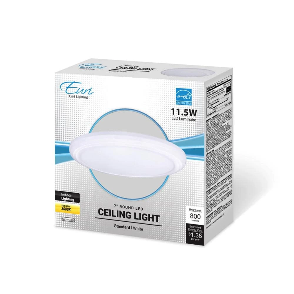 Ideal for kitchens, hallways and entryways, this Euri Lighting flush mount ceiling light provides a warm and welcoming illumination in Soft White (3000K) color temperature. Energy efficient and long-lasting, this LED ceiling light reduces energy costs and maintenance worries, while still adding a simple touch of style to any home. See Euri Lighting EIN-CL07WH-2040e for vibrant and lively Bright White (4000K).