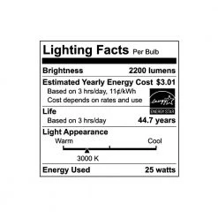 - Estimated yearly energy cost: $3.01 (based on 3 hours/day, 11/kWh, costs depend on rates and use)
