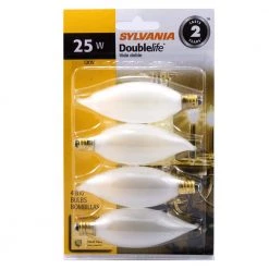 The Sylvania Double Life 25-Watt Soft White Candelabra bulb reduces glare with the frost glass lens. A lifetime of 3,000-hour means less bulb changes for you. These dimmable bulbs with decorative bent tips are optimal for chandeliers.