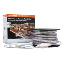 Sylvania LED Plug-In Outdoor Flex Light offers a complete solution for your lighting needs. Suitable for outdoor use year-round. The kit includes strip, AC power cord, clips and screws as well as a full guide to installation. Long Life: Up to 20,000 hours.
