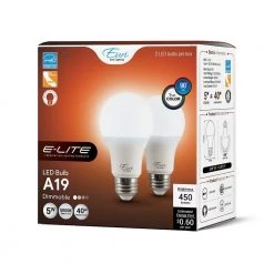 This A19 LED Light Bulb uses only 5-Watt of energy and lasts for 25,000-hours. These bulbs are ideal for ambient lighting or general purpose applications due to its uniform Warm White Light. Enjoy features such as instant on, dimming options, shatter resistance, mercury-free, 90 plus CRI and damp rated.
