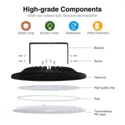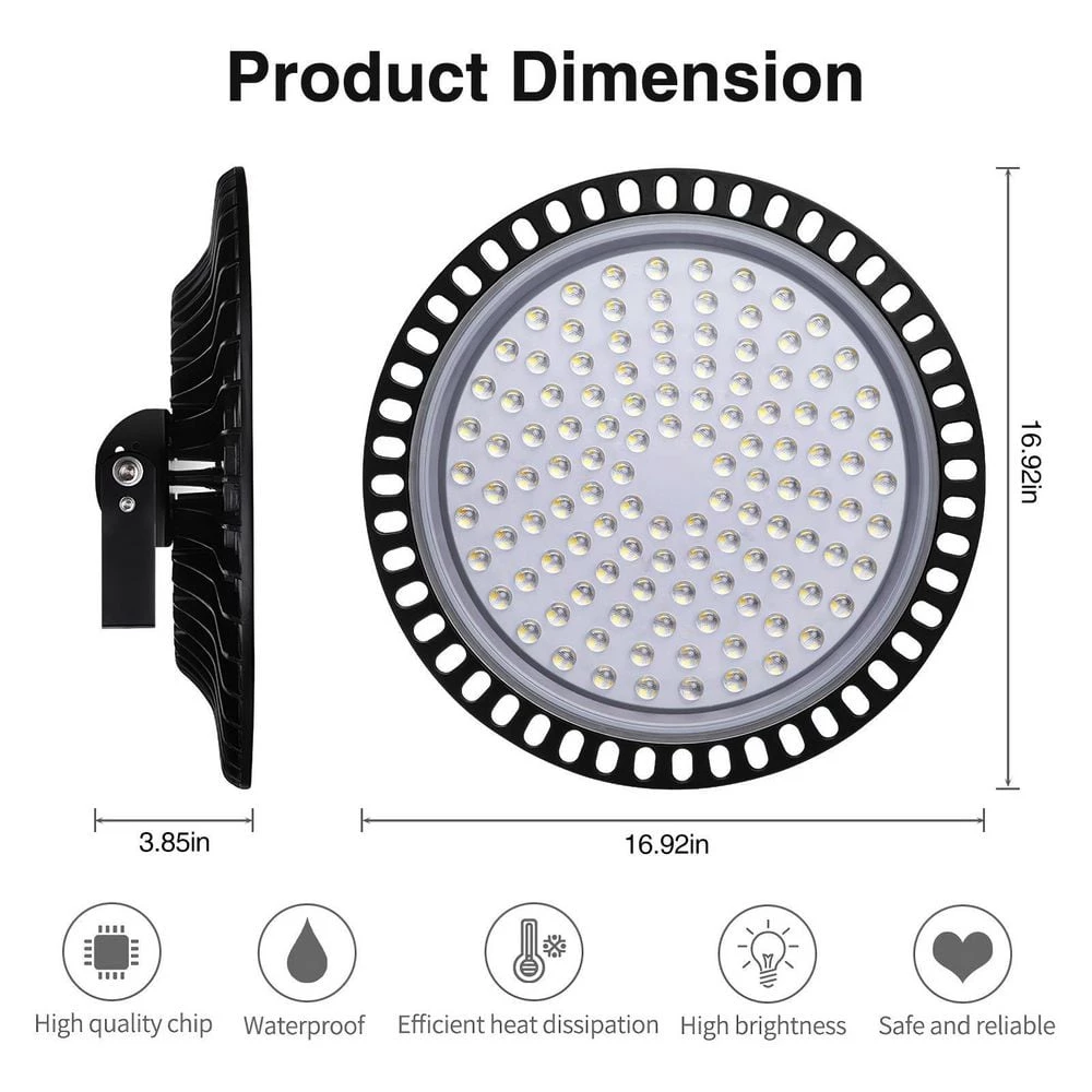 The LED lamps use high brightness LED chips. The UFO LED light features a beautiful appearance, high-pressure cast aluminum shell and there are many heat dissipation fins on the light shell, so the light features good heat dissipation effect. Compared with incandescent lamps and halogen lamps, it can save more than 85% of electric energy, and compared with high-pressure sodium lamps and HID bulbs, its service life is more than doubled.The light is easy to install, which can be hanging-mounted and wall-mounted, and the light is suitable for lighting in warehouses, garages, factory workshops, warehouse supermarkets, basements, exhibition halls, stadiums and other places.
