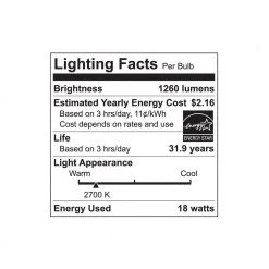- Energy used: 18-Watt (equivalent to a 115-Watt standard incandescent light bulb)
