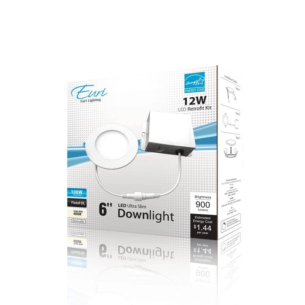 Compact and convenient, this 6 in. LED downlight is designed for quick and easy installation anywhere. With spring action clips and a separate junction box, this ultra-slim downlight is the perfect choice for recessed lighting. ENERGY STAR Certified, IC-rated and dimmable, the DLC6S-2040e triumphs over standard incandescent or fluorescent lighting. Guaranteed to save energy with every switch on, this LED downlight is available in Soft White (3000K), Bright White (4000K) and Cool White (5000K) see Euri Lighting DLC6S-2000e and DLC6S-2050e.