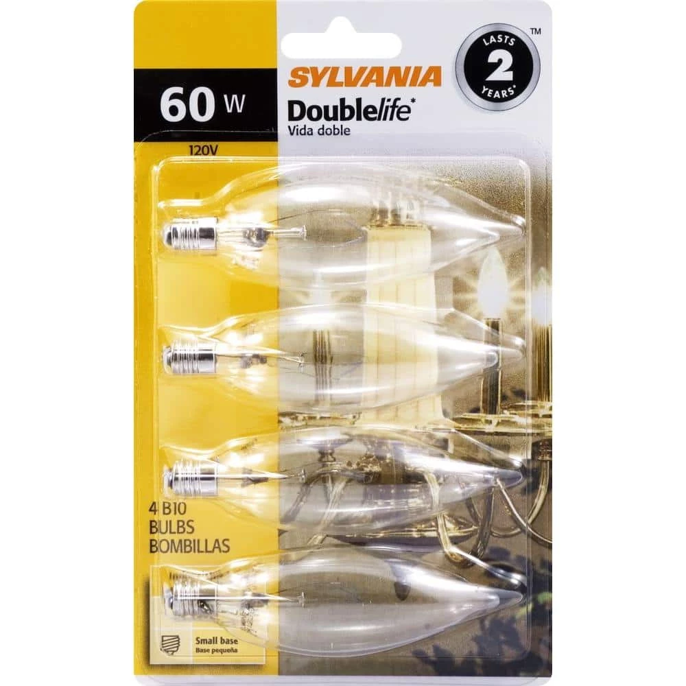 The Sylvania 60-Watt B10 Double Life Incandescent Light Bulbs would make perfect use in your kitchen, bedroom, or living room as a chandelier or as any decorative fixture. Any space will be beautifully illuminated with this candle shaped lamps 512 Lumens, which can be dimmed to your preferred brightness level. This soft white light with a color temperature of 2700K creates a cozy atmosphere for any space in your home. With a long life span of 3,000 hours, there is no need to worry about spending anything on replacements or maintenance costs. As a global leader and full-spectrum provider of professional, state-of-the-art, and luminaire LED lighting solutions, all of Sylvanias products focus on catering to the changing moods and needs of their customers.