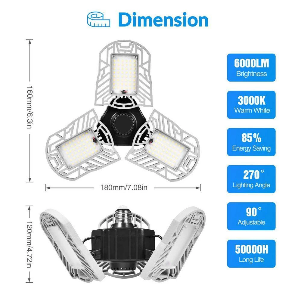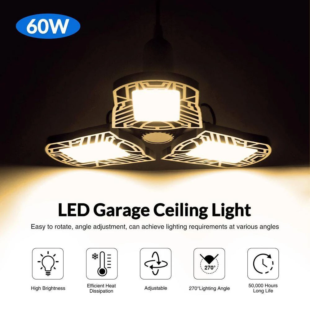 The garage light features high-quality LED chip, high brightness, high color rendering index, low power consumption and compared to incandescent lamps and halogen lamps, the light can save more than 85% of electricity. Lighting the dark with LED lights for every family, committed to designing and providing high-quality lights. Widely used in garage, warehouse, basement, workshop and most workspace etc.
