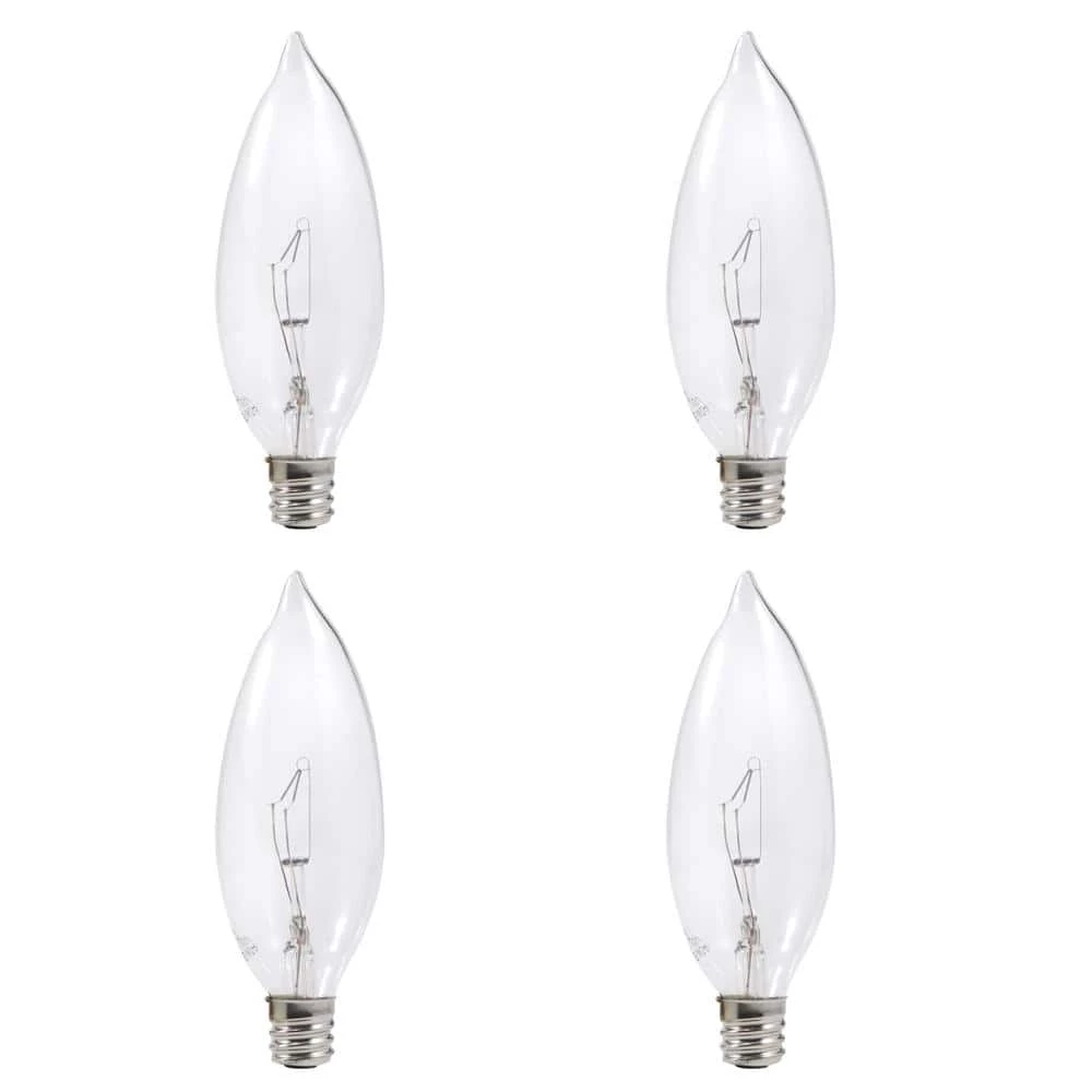 The Sylvania Double Life 60-Watt Decorative Bent Tip Light Bulbs will give your home the decorative touch it needs. With a long life of 3,000-hour, Sylvania Double Life gives you the freedom of fewer bulb changes. The clear finish allows the bulb’s 512-Lumen to light up any fixture.