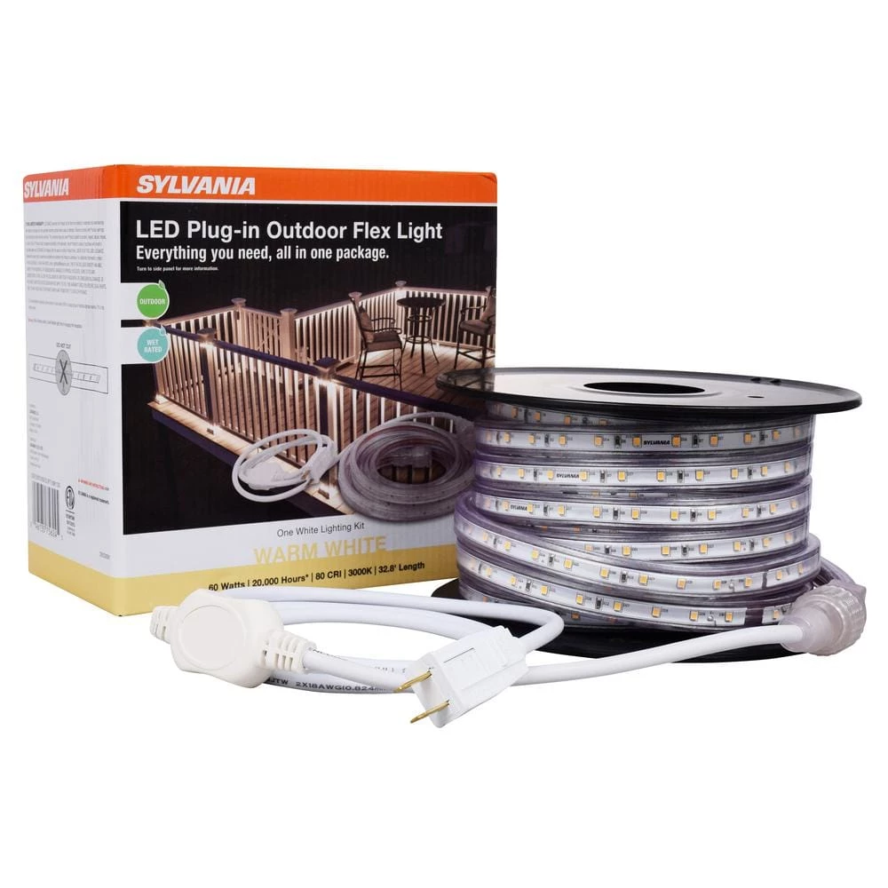 This 60-Watt Equivalent Plug-In Outdoor Deck Rail Flexible LED Strip Light only uses a total of 8.5-Watt to produce 1990 Lumens of bright white illumination. An ideal equivalent for replacing a 60-Watt incandescent light bulb, this string of light strips with a color temperature of 3000K is perfect to use as outdoor deck lights. It molds to the exact contour and shape of any object, so rest assured it will fit perfectly anywhere in your place. Suitable to use all year-round, there is no need to worry about spending on replacements or maintenance costs. As a global leader and full-spectrum provider of professional, state-of-the-art, and luminaire LED lighting solutions, all of Sylvania’s products focus on catering to the changing moods and needs of their customers.