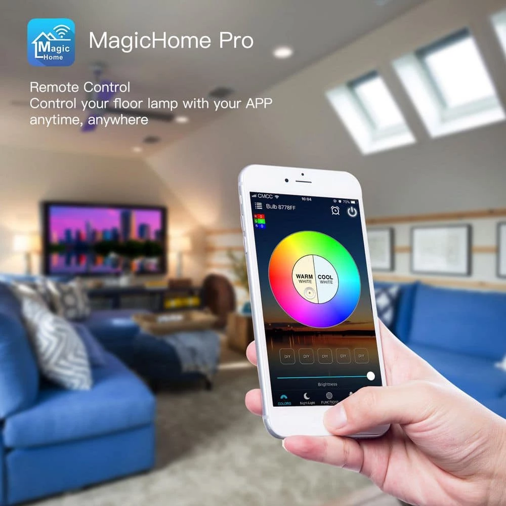 The smart standing lamp provides both RGB colors and white lights. The brightness can be adjusted from 1% to 100% and the color temperature can be adjusted from 2700K to 5000K. Also, the dimmable floor lamp provides very high stability for its stable base, can not be easily pushed down.