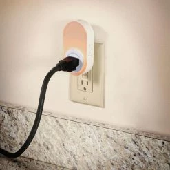 Sylvania automatic nightlight with built-in plug is a great option when you want to ensure you won’t lose an outlet space. Comes with a plug to use while the nightlight is in function and is sleek and convenient. The product also has functionality to switch between Color temperatures, a nice amber glow at 2200K or a cool white glow at 4000K. Illuminating at 5 Lumens or 20 Lumens, select the brightness that works for your home.