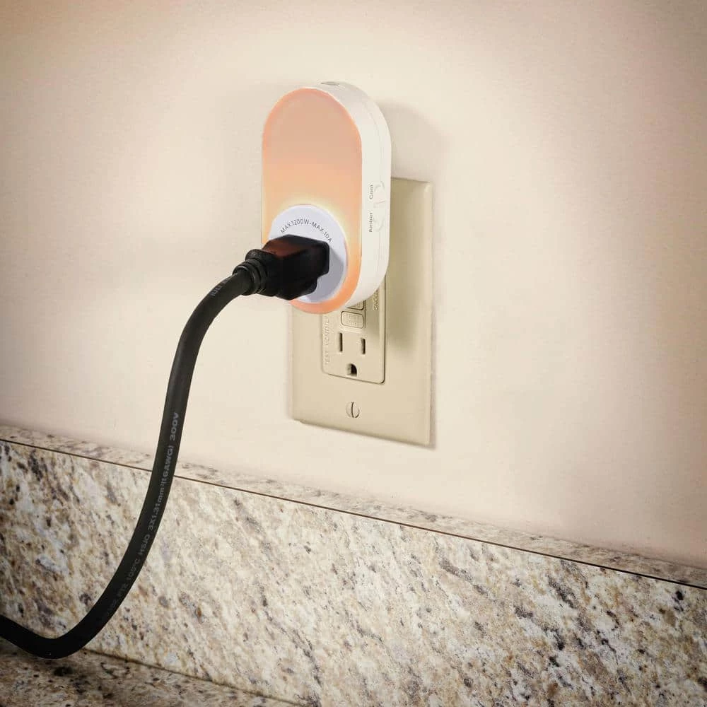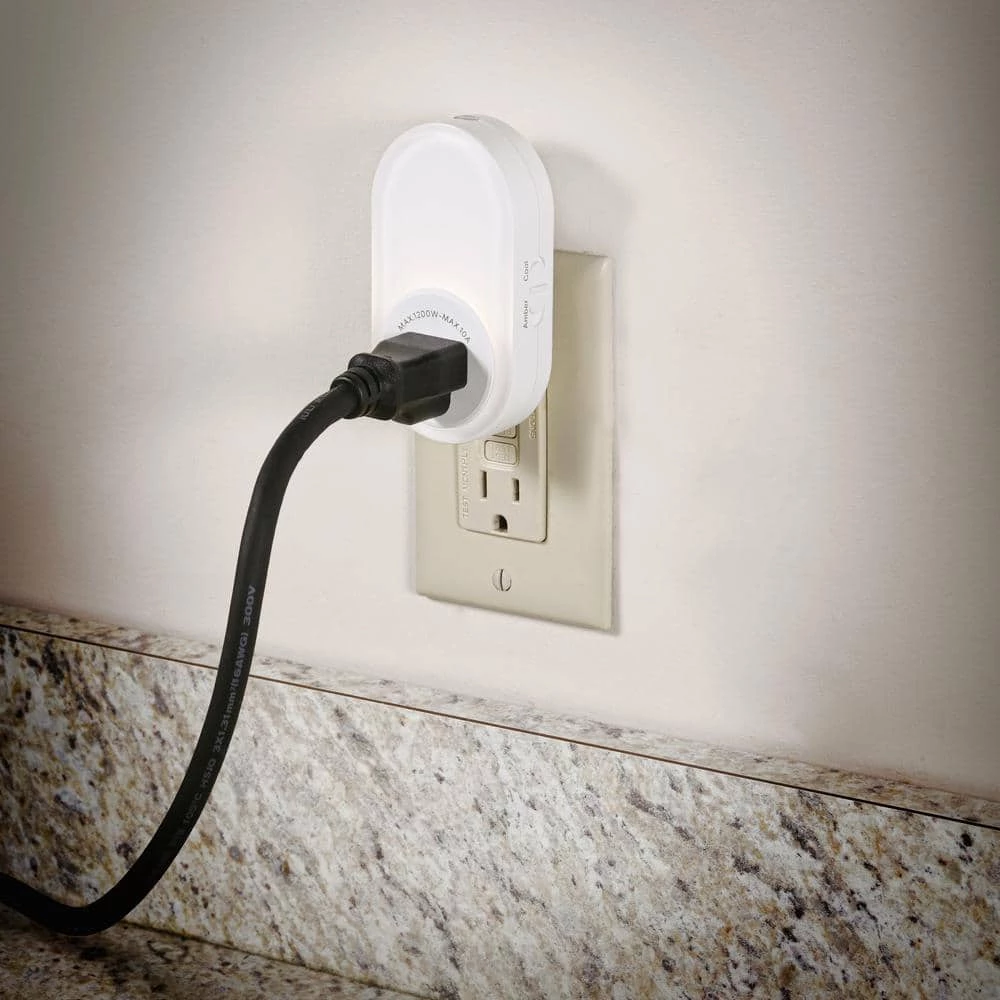 - Feature: automatic nightlight with built-in outlet plug, never lose a space to plug your devices in