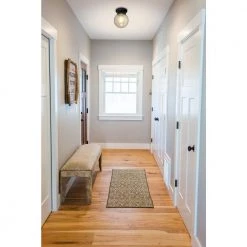This trendy, antique black, semi-flush mount fixture provides a vintage-inspired option to light kitchens, gathering areas, hallways and foyers. Like designs seen in high-end home furnishing stores and lighting showrooms, this versatile fixture compliments the look of almost any space and pairs nicely with pendant lights. Seeded glass and metal detailing provide for an elegant and classic appearance. Each fixture ships with a highly efficient LED clear A19 filament bulb.