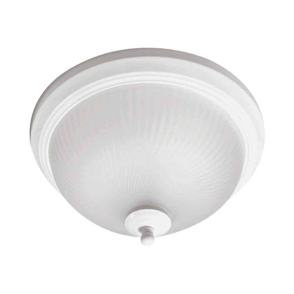 This decorative ceiling light has a classic contemporary style.13 in. round LED light features a clean White bezel and etched glass ribbed bowl. Enjoy its long lifespan and incomparable illumination in Warm White.