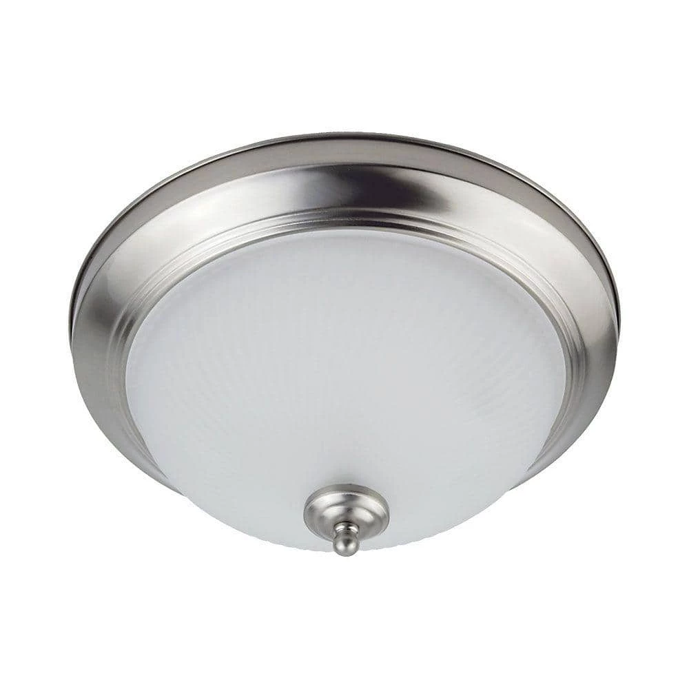 This decorative ceiling light has a classic contemporary style.13 in. round LED light features a clean Nickel bezel and etched glass ribbed bowl. Enjoy its long lifespan and incomparable illumination in Warm White.