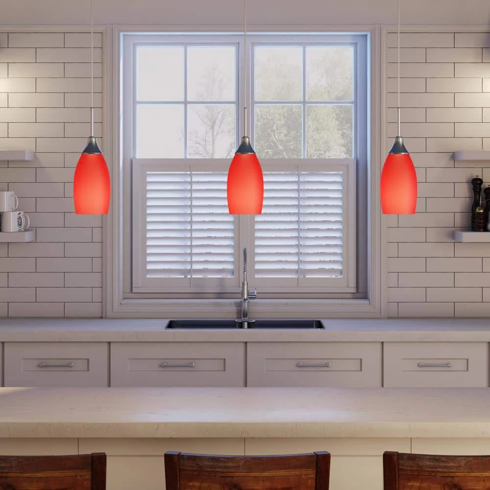 The Peak Collection Pendant light is perfect for an island or bar area. Each glass is hand-made and gives a unique touch. This Red pendant will be a focal point wherever located.