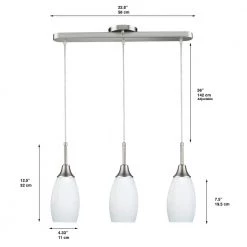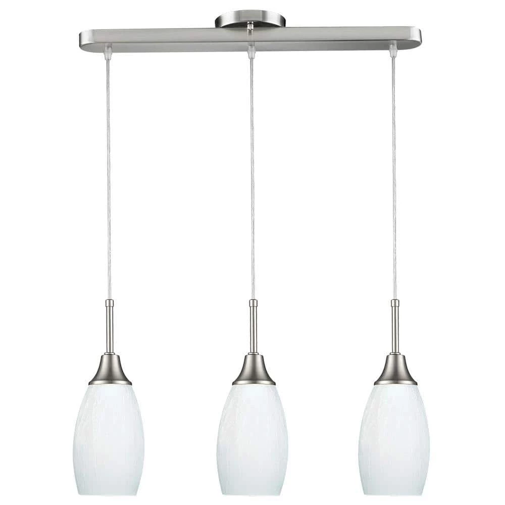 This modern Peak Collection Pendant Light is perfect for illuminating an island or bar area, adding to flair to the space around it. Each glass shade is hand-made for a unique touch. This white glass pendant will be a focal point wherever you decide to install.