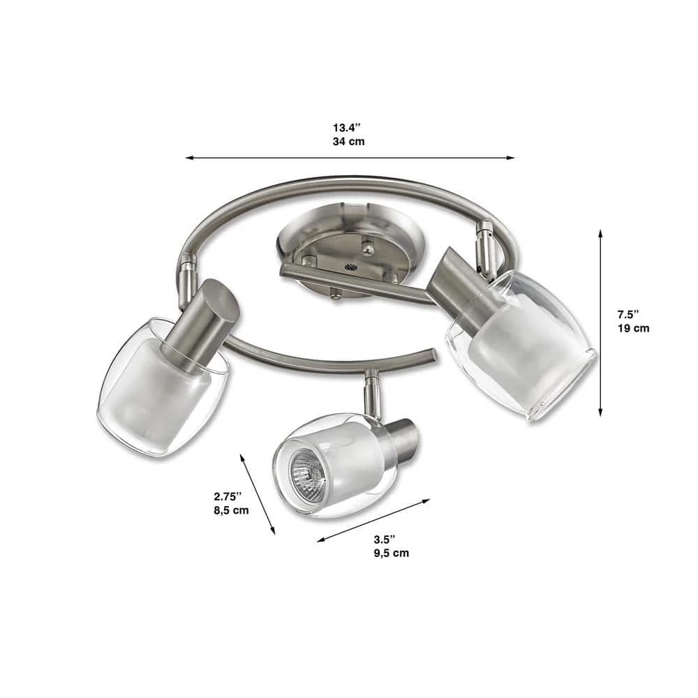 The Salem collection 3-Light Track Lighting has a nickel finish with clear and frosted glass. The bullet-shaped design of this lighting fixture enhances your decor with a modern style.